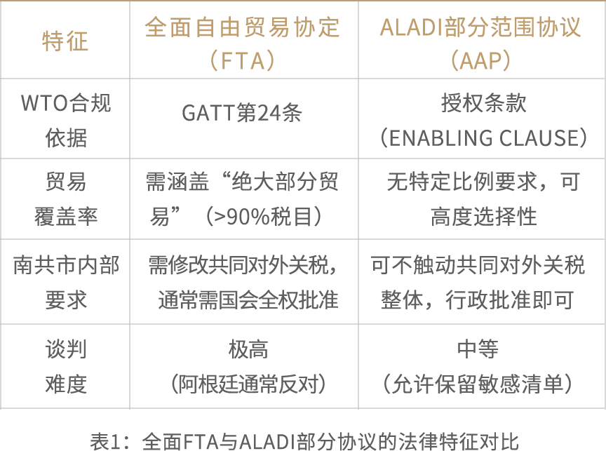 巴西和乌拉圭找到的突破口是拉美一体化协会(ALADI)法律框架,特别是《1980年蒙得维的亚条约》第25条。该条允许ALADI成员国与其他发展中国家签署“部分范围协议”(Acuerdos de Alcance Parcial, AAP)。与WTO第24条要求涵盖“绝大部分贸易”(通常解读为90%以上税目)不同,AAP允许仅就有限的税目清单进行关税减让。