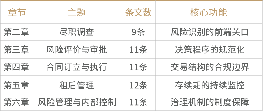 《办法》共计8章68条,覆盖了从尽职调查到风险处置的完整业务链条。其章节设计打破了传统“主体—行为—责任”的立法模式,按照融资租赁业务的实际操作流程进行编排,在立法技术上体现出鲜明的“业务流程导向”特征。