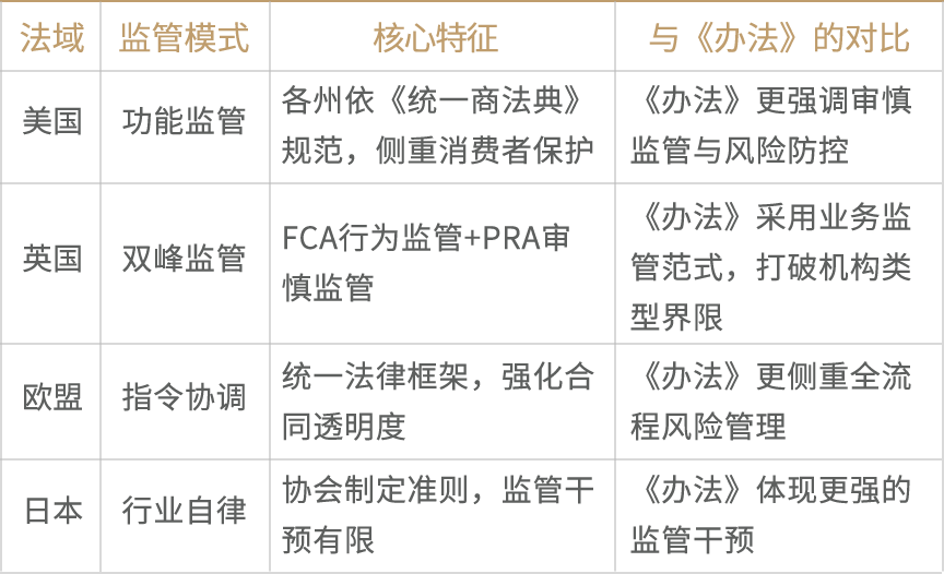 国际融资租赁监管的共同趋势包括:强化行为监管与消费者保护、重视ESG因素、推动数字化转型与监管科技应用、加强跨境监管协调。《办法》吸收了这些趋势的核心元素。
