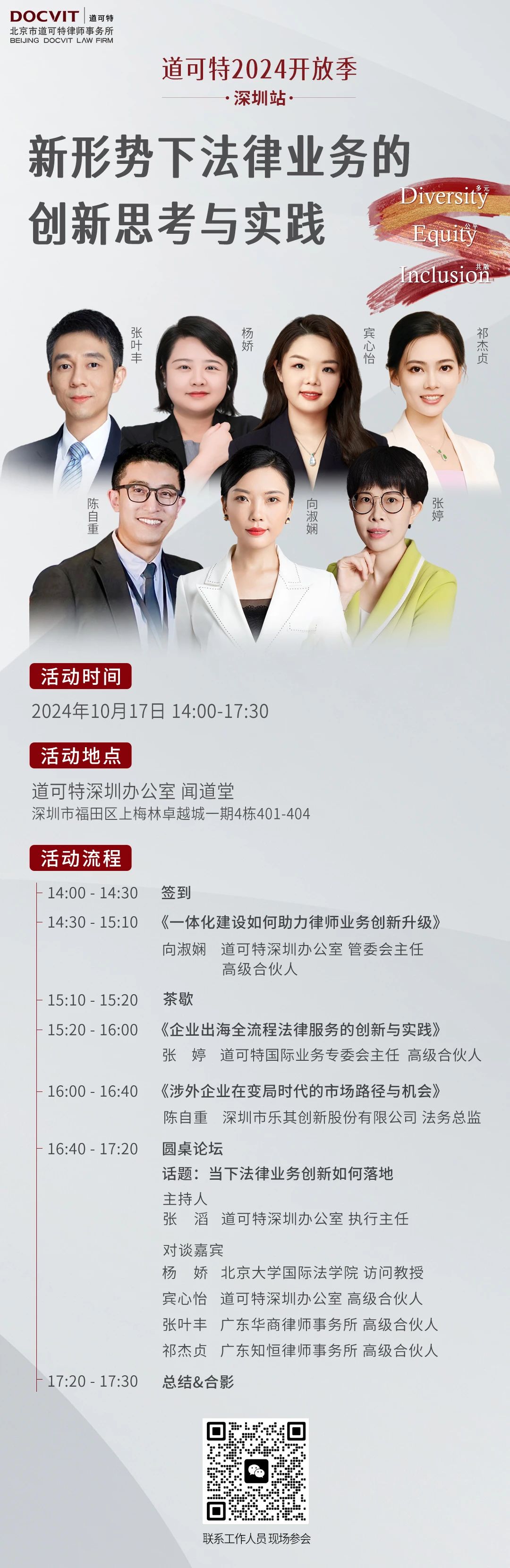 邀请函丨道可特2024开放季·深圳站:新形势下法律业务的创新思考与实践