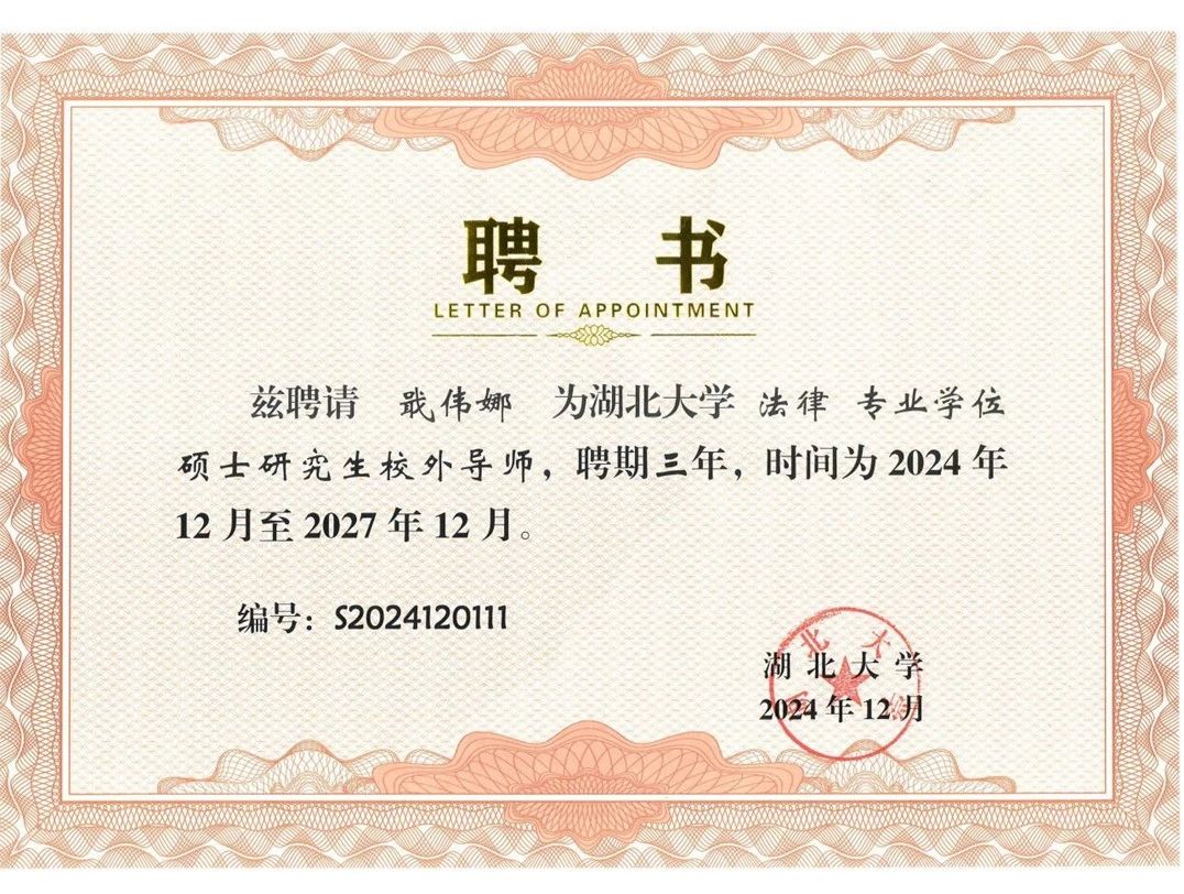 荣誉丨道可特律师及运营总监受聘担任湖北大学法学院法律专业学位硕士研究生校外导师